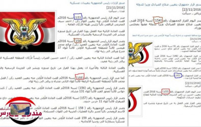 رفع نائب رئيس الجمهورية الفريق الركن علي محسن صالح برقية تهنئة لفخامة الرئيس عبدربه منصور هادي رئيس الجمهورية القائد الأعلى للقوات المسلحة بمناسبة الذكرى الـ49 لعيد الاستقلال المجيد 30 نوفمبر