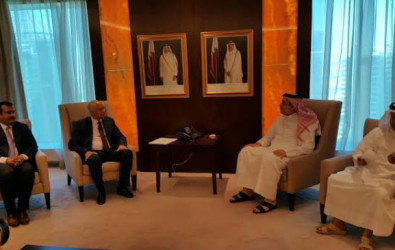 استقبل معالي وزير الخارجية القطري الدكتور خالد بن محمد العطية في الدوحة الخميس, معالي وزير الخارجية الدكتور رياض ياسين الذي يزور قطر حالياً.