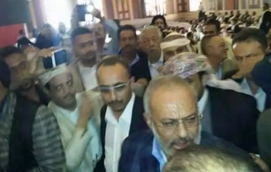 ظهر المخلوع علي عبد الله صالح في عزاء عبد الكريم الإرياني مستشار الرئيس عبد ربه منصور هادي بالقاعة الكبرى في العاصمة صنعاء.