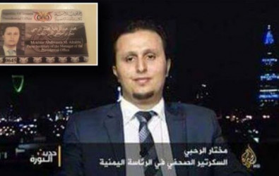 فوجئ الجمهور اليمني أول من أمس، الأحد، ببيان لرئاسة الجمهورية يتبرّأ فيه من أية تصريحات منسوبة لها، نافياً وجود سكرتير صحافي للرئيس، وتم تذييل البيان بأن الصحافي مختار الرحبي، بقي يطل عبر