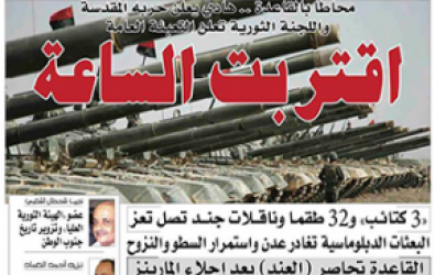 توعد الرئيس السابق علي عبد الله صالح الشعب اليمني والرئيس هادي، عبر صحيفته اليومية، «اليمن اليوم» والتي عنونت غلاف صفحتها الاولى في مانشيات عريض «اقتربت الساعة».