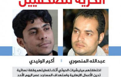 أدانت دائرة الإعلام والثقافة بالتجمع اليمني للإصلاح بأمانة العاصمة، العمل الهمجي الذي قام به مسلحو حوثيون باختطاف الزميلين الصحافيين عبدالله المنصوري و أكرم الوليدي، مساء الأحد، من حي
