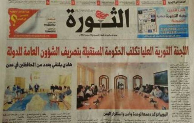 ظهر الرئيس عبدربه منصور هادي في صحيفة الثورة الحكومية التي تسيطر عليها جماعة الحوثي، بعدما نشر خبر له في الصفحة الرئيسية لعدد الاثنين.