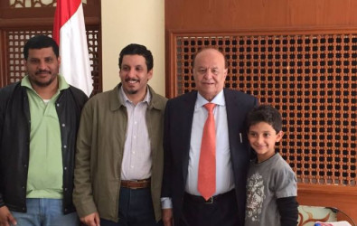 تداول ناشطون ومدونون يمنيون في شبكات التواصل الاجتماعي الصورة التي نشرها أمين عام حزب الرشاد الدكتور عبدالوهاب الحميقاني في صفحته وقال أنها أول ظهور للرئيس هادي منذ تقديم