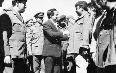 تداول ناشطون يمنيون على موقع التواصل الاجتماعي صورة نادرة للرئيس ابراهيم الحمدي وهو يصافح أخيه الشهيد عبدالله الحمدي قائد قوات العمالقه حيناها.