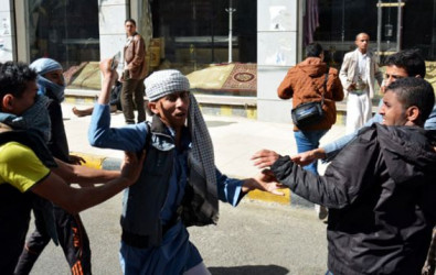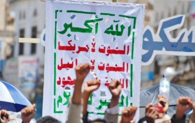 انتشرت على مواقع التواصل الاجتماعي في اليمن صور لمتظاهر حوثي بدا أنه صغير في السن، يحمل خنجرا طويلا في وجه متظاهرين خرجوا يوم الجمعة في أكبر احتجاج شعبي على سياسات الجماعة منذ سيطرتها على