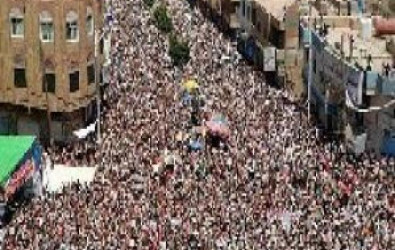 فقد شاركت حشود كبيرة من اليمنيين في مسيرة كبيرة انطلقت من ساحة