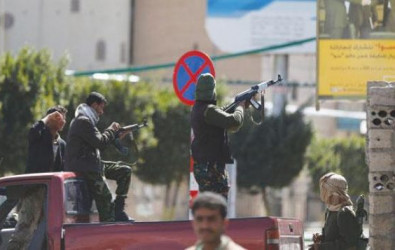 نشرت وكالة الأنباء العالمية "رويترز" صورة لعدد من عناصر الميليشيات المسلحة التابعة لجماعة الحوثي في شوارع العاصمة صنعاء، أثناء المواجهات التي اندلعت صباح أمس الإثنين بين مسلحي الحوثي وقوات