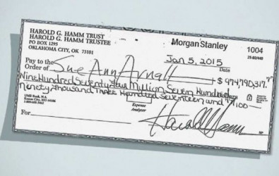 قد لا يتاح لمعظمنا فرصة رؤية شيك بنكي باسمه بقيمة بمليار دولار دع عنك رفضه، وهذا ما فعلته سو آن آرنال، زوجة الملياردير الأمريكي، هارولد هام، التي تطالب بالمزيد من ثروة زوجها كتسوية طلاق في