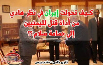 فجأةً، اختفت حدية الرئيس اليمني عبدربه منصور هادي من قاموس خطاباته وتصريحاته تجاه جمهورية إيران الإسلامية، وبات يخطِب ودها ويتقرب إليها بإرسال الموفدين وإهداء التحايا إلى المرشد الأعلى علي