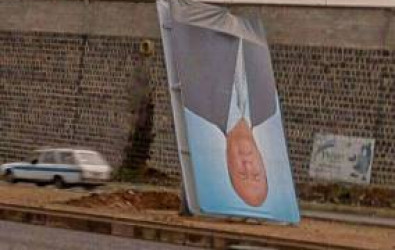 نشر ناشطون على مواقع التواصل الاجتماعي صورة قالوا إنها للوحة كانت تحمل صورة الرئيس عبدربه منصور هادي، أسقطها الحوثيون في منطقة الصباحة غرب العاصمة صنعاء.