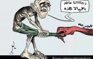 تداولت وسائل الإعلام اليمنية كاريكاتيرا للرسام سامر الشميري نشره قبل فترة يجسد حالة المواطن بعد اقرار الجرعة الجديدة.