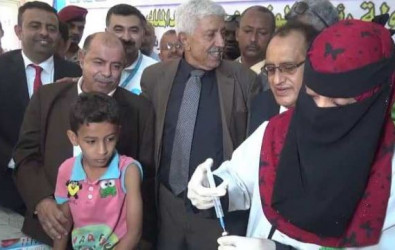 دشن نائب رئيس الوزراء الدكتور سالم الخنبشي ووزير الصحة العامة والسكان الدكتور ناصر باعوم صباح اليوم، بالمجمع الصحي بالميدان بمديرية صيرة بالعاصمة المؤقتة عدن ،الحملة الوطنية للتحصين ضد مرض