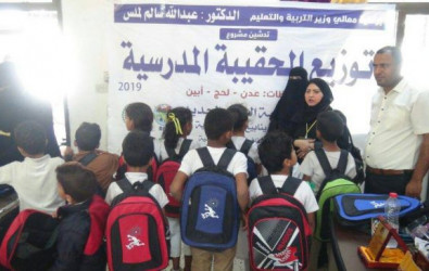 دشن اليوم توزيع مشروع الحقيبة المدرسية لثلات محافظات (عدن - لحج -أبين)،