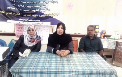 ضمن برنامج التعليم النشط افتتحت الأخت مايسة عشيش رئيسة شعبة التدريب والتأهيل بمكتب التربية والتعليم في محافظة عدن البرنامج التدريبي ( التخطيط للتدريس وتقويم التدريس ) لتدريب مدربي المعلمين