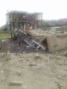 بالصور..مجاميع مسلحة بيافع تنتقم لمقتل قيادي حراكي بتفجير عمارة الجاني على الطريقة الحوثية