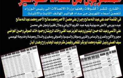 رفعت وزارة الإتصالات وتقنية المعلومات الى رئاسة الوزراء كشوفات تضمنت اسماء كبار المتخلفين والمتهربين عن سداد فواتير الهاتف الثابت والانترنت في اليمن. وتحت عنوان ”المتهربون من سداد
