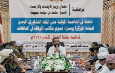 اختتم في العاصمة المؤقتة عدن اليوم اللقاء التشاوري الموسع الأول لقيادة وزارة الأوقاف والإرشاد ومدراء عموم مكاتب الأوقاف في المحافظات، الذي انطلق الأحد، برعاية كريمة من معالي وزير