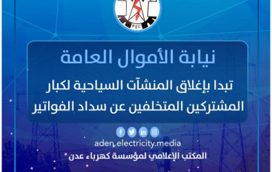 طالب محافظ العاصمة عدن الأستاذ أحمد حامد لملس القائم بأعمال رئيس نيابة الأموال العامة بالمحافظة فضيلة القاضي ناصر باعامر بتوجيه الجهات المعنية بإغلاق كافة المنشآت التجارية والفنادق