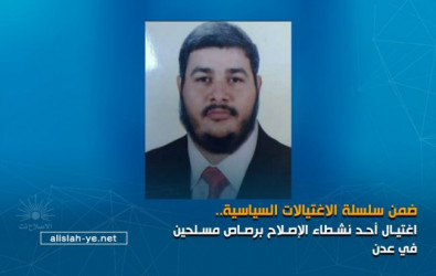 اغتال مسلحون، اليوم الأربعاء، أحد نشطاء حزب التجمع اليمني للإصلاح، أمام منزله بالعاصمة المؤقتة عدن