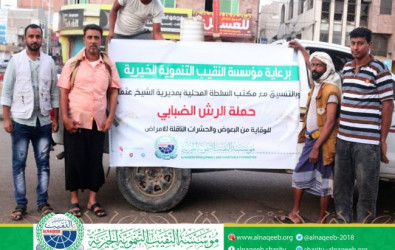 بدأت صباح اليوم مؤسسة النقيب التنموية الخيرية حملة رش ضبابي بالتعاون مع مكتب السلطة المحلية بمديرية الشيخ عثمان .
