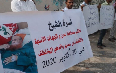 نظمت أسرة الشيخ المختطف عبدالقادر الشيباني وقفة احتجاجية أمام مبنى محافظة عدن للمطالبة بالكشف عن مصيره بعد مرور 21 يوماً من اختطافه في كورنيش منطقة ريمي عصر يوم الجمعة 30 أكتوبر الماضي من قبل