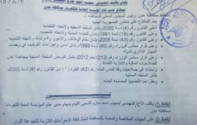 وقال المصدر ان الشعبي فوض نائبه م. أمجد مانا للقيام بأعمال مدير عام مؤسسة كهرباء عدن