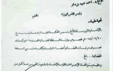 أعلن موظفو ديوان عام وزارة المالية بالعاصمة المؤقتة عدن، تعليقهم العمل ابتدأ من يوم غد الثلاثاء، احتجاجا على اصدار نيابة صيرة أوامر قبض قهري بحق عدد من قيادات الوزارة، لإجبار مختصي