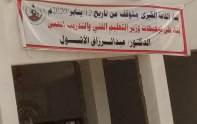 بناء على توجيهات د.عبدالرزاق الأشول وزير التعليم الفني والتدريب المهني تم أيقاف عملية هدم قاعات دراسية لبناء قاعة مناسبات في كلية المجتمع عدن.