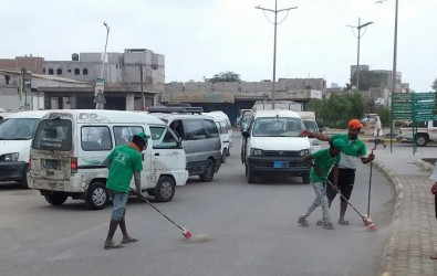 دشنت مؤسسة يدا بيد بدعم من مركز الملك سلمان للإغاثة والأعمال الإنسانية صباح اليوم العمل الميداني لمشروع الاستجابة الطارئة للنظافة والإصحاح البيئي في مديرية دار سعد بالعاصمة المؤقتة عدن