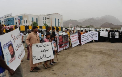نفذت منسقية مناصرة أسر ضحايا الاغتيالات صباح اليوم الخميس الموافق 25يوليو , وقفة احتجاجية أمام المجمع القضائي تطالب بسرعة محاكمة المتهمين بقضايا الاغتيالات التي تطال أبناء العاصمة عدن.