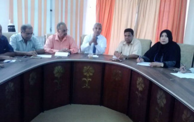 التقى مدير مكتب التربية والتعليم في محافظة عدن د .محمد الرقيبي رؤساء الشعب ومديري الادارات في مكتب التربية والتعليم ورؤساء الاقسام امس الثلاثاء لمناقشة جملة من القضايا المهمة التي تصب في