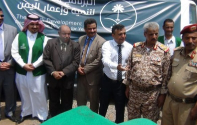دشن البرنامج السعودي لتنمية واعمار اليمن، اليوم، في العاصمة عدن، مشروع توزيع صهاريج المياه.
