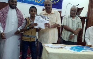 ضمن اتجاهات عمل ادارة تحفيظ القران الكريم بمكتب التربية والتعليم في محافظة عدن اقيمت في مسجد حجازي في مديرية دار سعد أمس الاحد فعالية تكريم 18 حافظا للقران الكريم من البنين والبنات.