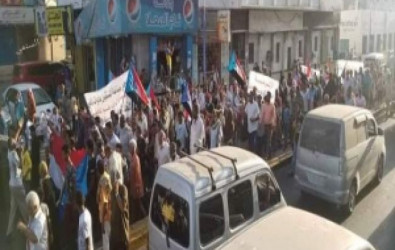 وجاب المئات من المتظاهرين شارع مدينة المعلا بالعاصمة عدن