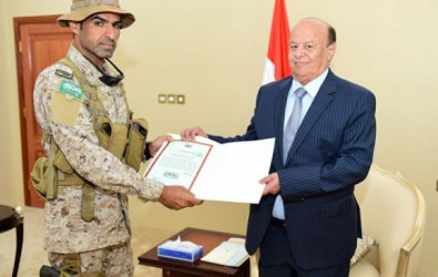 منح  الرئيس عبدربه منصور هادي رئيس الجمهورية اليوم قائد قوات العمليات الخاصة السعودية بعدن العقيد الركن عبدالله بن سهيان وسام الشجاعة نظيراً لمواقفه البطولية الشجاعة التي اجترحها