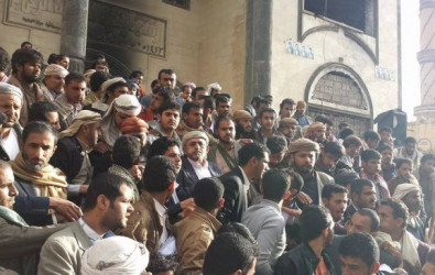 إحتشد المئات من الناشطين والمواطنيين أمام منزل الشيخ صادق الاحمر بصنعاء قبل قليل للتضامن معه جراء همجية وعنصرية مليشيات الحوثي المسلحة ويظهر الشيخ صادق الأحمر وهو يتوسط المظاهرة التضامنية