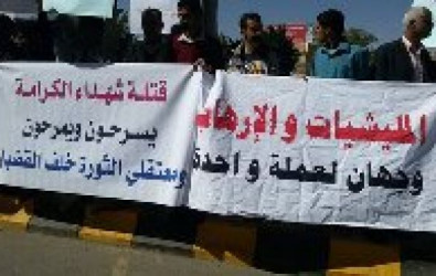 تظاهر ناشطون صباح اليوم السبت بساحة التغيير بصنعاء للمطالبة بإخراج المليشيات المسلحة من العاصمة والمحافظات وسرعة الإفراج عن معتقلي الثورة الشبابية السلمية.