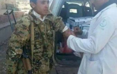 تداول ناشطون صورة تظهر أحد فرق حملة التحصين وهو يلقح لطفل تابع لمسلحين الحوثي التي تنتشر بالعاصمة بعد سيطرتهم عليها في سبتمبر الماضي.
