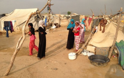 تنتاب الحيرة السيدة خضراء محمد سالم، النازحة اليمنية إلى إحدى قرى منطقة حجة، وهي تفكر في تأمين إفطار عائلتها بعد نفاد سلة الغذاء الشهرية التي تتسلمها من منظمات إغاثية في مخيمات المزرق بمنطقة