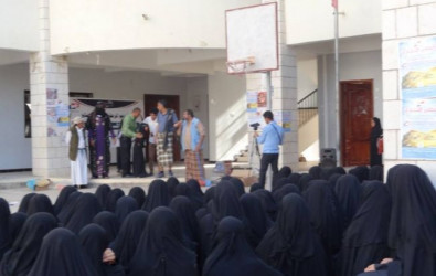 نفذت خيمة التوعية بالمرحلة الانتقالية العرض المسرحي السادس بمديرية قعطبة مدرسة عائشة للبنات حيث قامت بتنفيذ المسرحية فرقة المسرح الوطني محافظة إب بعنوان(المرأة وحق التعليم في الحوار الوطني)