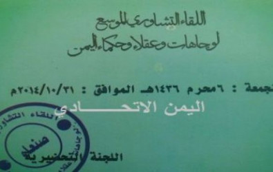 وزعت اللجنة المنظمة للقاء التشاوري الذي دعا الى انعقاده عبدالملك الحوثي نهاية الاسبوع في خطابه الاخير مطلع الاسبوع الحالي - وزعت دعوات مبهمة و مجهولة الهوية والمصدر وزمان ومكان انعقاد