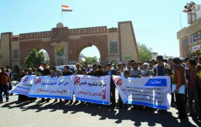 تظاهر العشرات من طلاب جامعة صنعاء اليوم الأربعاء للمطالبة بإخراج مليشيات الحوثي المسلحة من الجامعة.