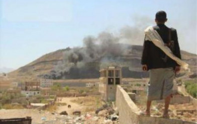 أفادت مصادر محلية بصنعاء أن الطيران الحربي فتح حاجز الصوت على مقربة من تجمعات مسلحة للحوثيين وبدء بقصف بعضها في شارع الثلاثين شمال العاصمة صنعاء.