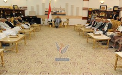 استقبل الأخ الرئيس عبد ربه منصور هادي رئيس الجمهورية اليوم عدد من المشائخ والشخصيات الاجتماعية والسياسية من جميع محافظات الجمهورية من المهرة وحتى صعدة يتقدمهم عضو مجلس الشورى الشيخ صادق بن