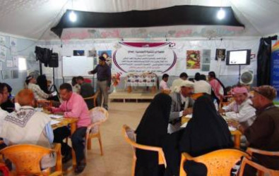 دشنت اليوم السبت جمعية البر للتنمية الاجتماعية الخيرية بخيمة دعم المرحلة الانتقالية بمحافظة الضالع مشروع قافلة التوعية الميدانية بمخرجات مؤتمر الحوار الوطني الخاصة بقضية بناء الدولة