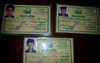 شاهد بالصور..بطائق لجنود في الأمن المركزي يقاتلون في صفوف الحوثي بالجوف