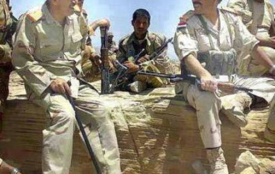 تداول ناشطون على موقع التواصل الاجتماعي "فيسيوك" صورة تجمع اللواء علي محسن الاحمر -قائد الفرقة اولى مدرع سابقاً- والعميد حميد القشيبي -قائد اللواء 310 بعمران- في احد المعارك ضد مليشيا الحوثي.