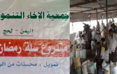 دشنت جمعية الاخاء صباح اليوم بمسيمير لحج توزيع السلة الغذائية الرمضانية على الفقراء والمحتاجين .