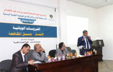 نظمت اليوم جامعه الناصر بالتعاون مع الجمعية الطبية الخيرية ندوة علمية بعنوان "الفيروسات الوبائية الانتشار وسبل المكافحة" بحضور أحمد شمسان المقري أستشاري طب أطفال رئيس الجيمعية اليمنة